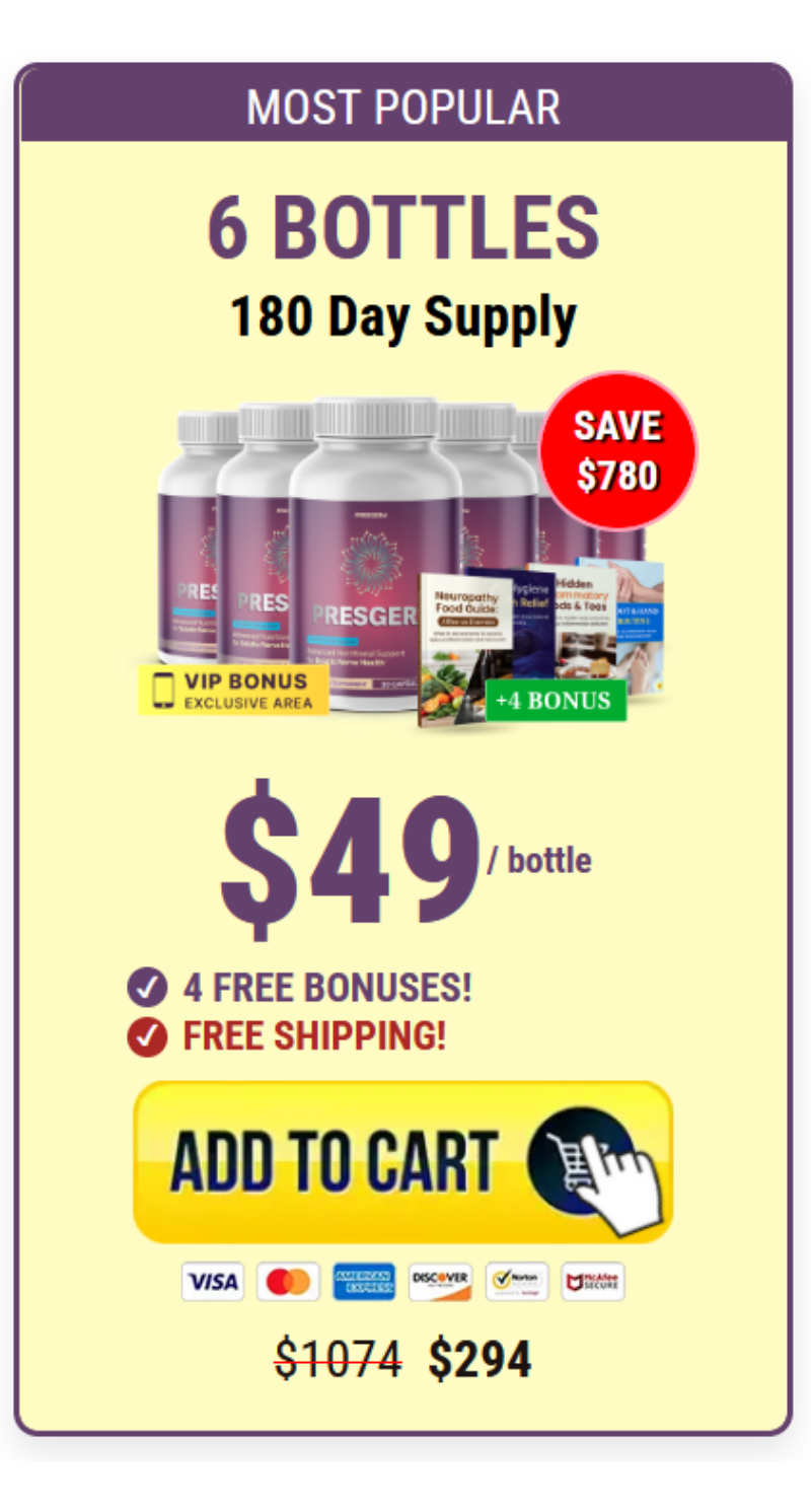 ⚠️ Interest: PRESGERA™ is a carefully formulated nerve-support supplement designed to promote nerve health, improve circulation, and help reduce discomfort such as tingling, burning sensations, and numbness. Choosing the authentic product ensures you receive the powerful blend created to support long-term nerve function and overall well-being.